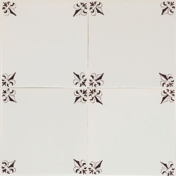 The Fleur-de-lis corner motif is available in Delft blue, manganese, or custom colors upon request. You can pair these tiles with plain tiles, decorated tiles, or entirely on its own. The motif can also be applied to any tile in our decorated series, allowing for broad customization. When placed together, these corner motifs form a continuous, decorative pattern across multiple tiles.